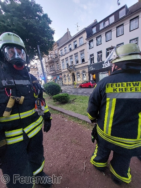 Am Samstag Abend gegen 20:15 Uhr wurde die Feuerwehr Krefeld zu einem Wohnungsbrand auf den Ostwall gerufen. Bei Eintreffen der ersten Kräfte hatten sich bereits mehrere Personen aus der Brandwohnung selbst gerettet. Da aufgrund einer Feierlichkeit noch eine unbekannte Anzahl von Personen im Haus vermutet wurden, erhöhte der Einsatzleiter das Alarmstichwort für mehrere Rettungsmittel. Es brannte im Bereich einer Küche eines Flügelanbaus im 1. Obergeschoß. Der Brand dehnte sich bereits auf den Dachstuhl aus. Die Brandbekämpfung wurde von zwei Seiten mit insgesamt sechs Atemschutztrupps durchgeführt. Glücklicherweise befanden sich keine weiteren Personen mehr im Objekt. Insgesamt wurden 13 Personen durch den Rettungsdienst gesichtet wovon eine Person in ein Krankenhaus transportiert wurde. Die Brandwohnung ist nicht mehr bewohnbar. Im Einsatz waren beide Wachen der Berufsfeuerwehr, die Freiwillige Feuerwehr Krefeld-Oppum und Fischeln mit insgesamt ca. 65 Einsatzkräften. Die verwaisten Wachen wurde durch die freiwillige Feuerwehr Krefeld-Uerdingen und Gellep-Stratum besetzt.