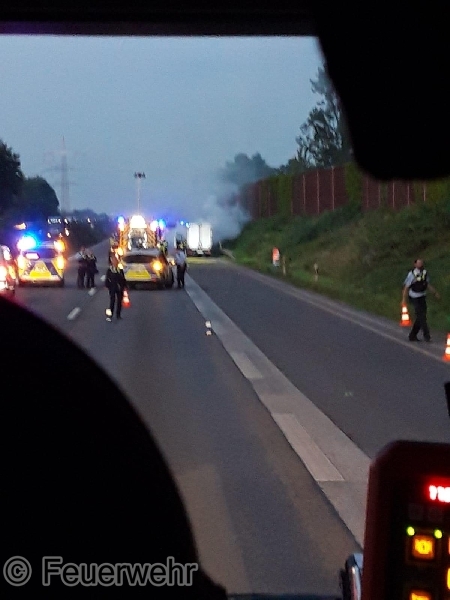 Wir wurden gemeinsam mit dem HLF 1\2 der Berufsfeuerwehr zu einem PKW Brand alarmiert. Dieser war nicht wie zuerst gemeldet auf der Raststätte Geismühle sondern auf der BAB 57 FR Köln.